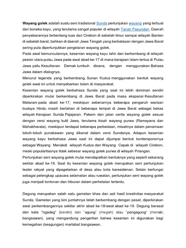Get Definisi Wayang Dalam Bahasa Sunda Images. Wayang adalah boneka tiruan orang yang terbuat dari pahatan kulit atau kayu dan sebagainya, yang dapat dimanfaatkan untuk memerankan tokoh pada pertunjukan drama tradisional (bali, jawa, sunda, dsb), biasanya dimainkan oleh seseorang yang disebut dalang (pusat bahasa, 2008). Sisindiran sapertina mangrupakeun budaya sunda anu dipangaruhan tina tradisi pantun urang malayu.