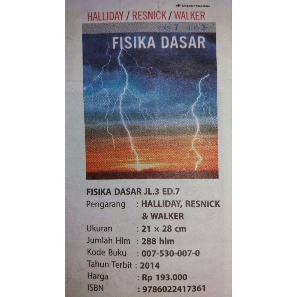 Jual Buku Fisika Dasar Halliday Jilid 1 Edisi 7 Kota Yogyakarta Berkahbuku99 Tokopedia