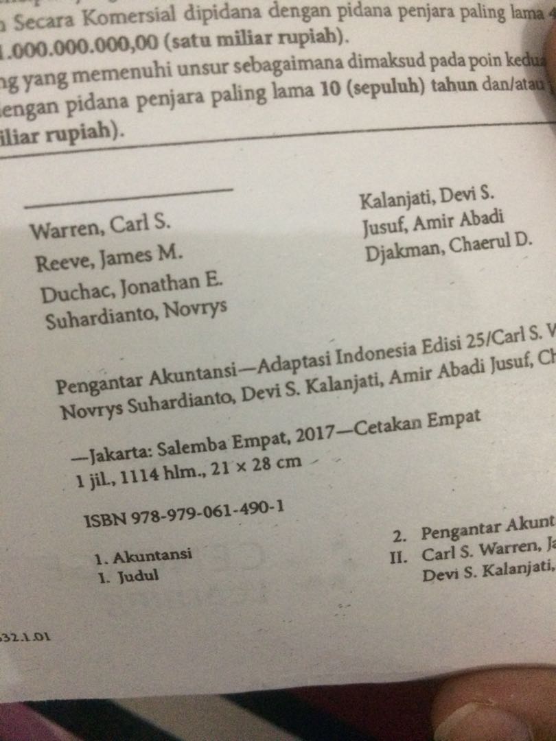 Pengantar akuntansi 1 adaptasi indonesia edisi 4 carl s warren penulis. Duchac ersa tri wahyuni amir abadi yusuf original segel penerbit tahun. Sebagai mahasiswi jurusan akuntansi syariah saya mendapatkan bonus ilmu selain ilmu akuntansi yg.