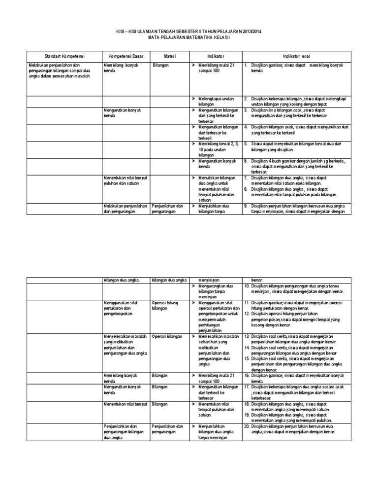 Contoh Soal Uas Matematika Kelas 1 Sd Semester 1 Casinivi S Blog
