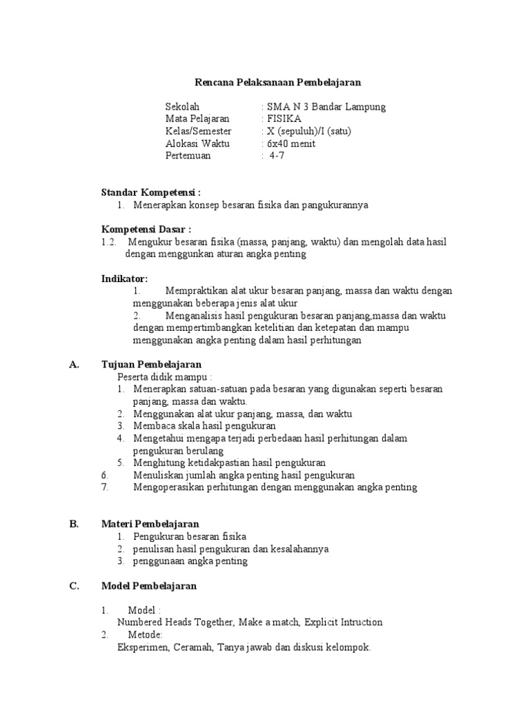 Pdf Rpp Fisika X Sm1 Pengukuran Edit Pake Arumdwi Astuti Academia Edu