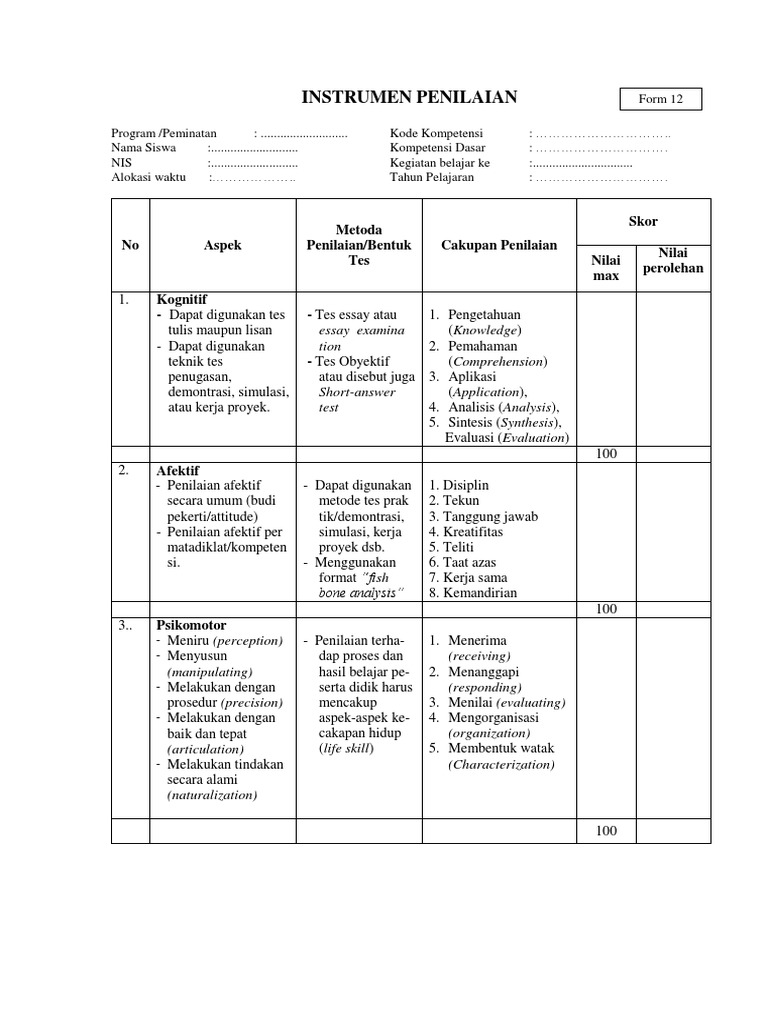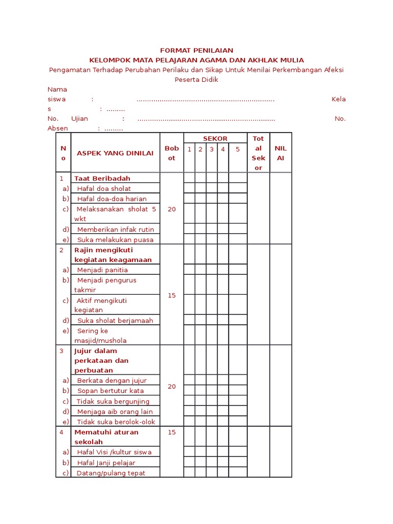 Tujuankurikulumktsp denganmaterisubjek subject matter 2. Pembelajaran afektif dan penilaian ranah afektif. Contoh format penilaian praktik wudu october 3 september 4 july 7 may 1 february 12 january 5 2015 99 november 4 october 6 june 8 may 5 april 6.