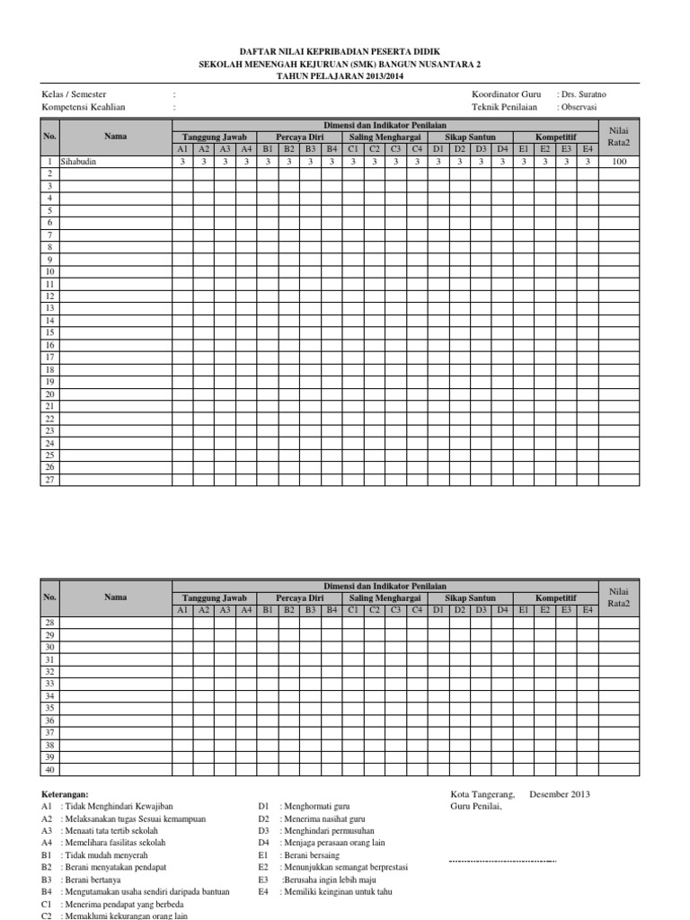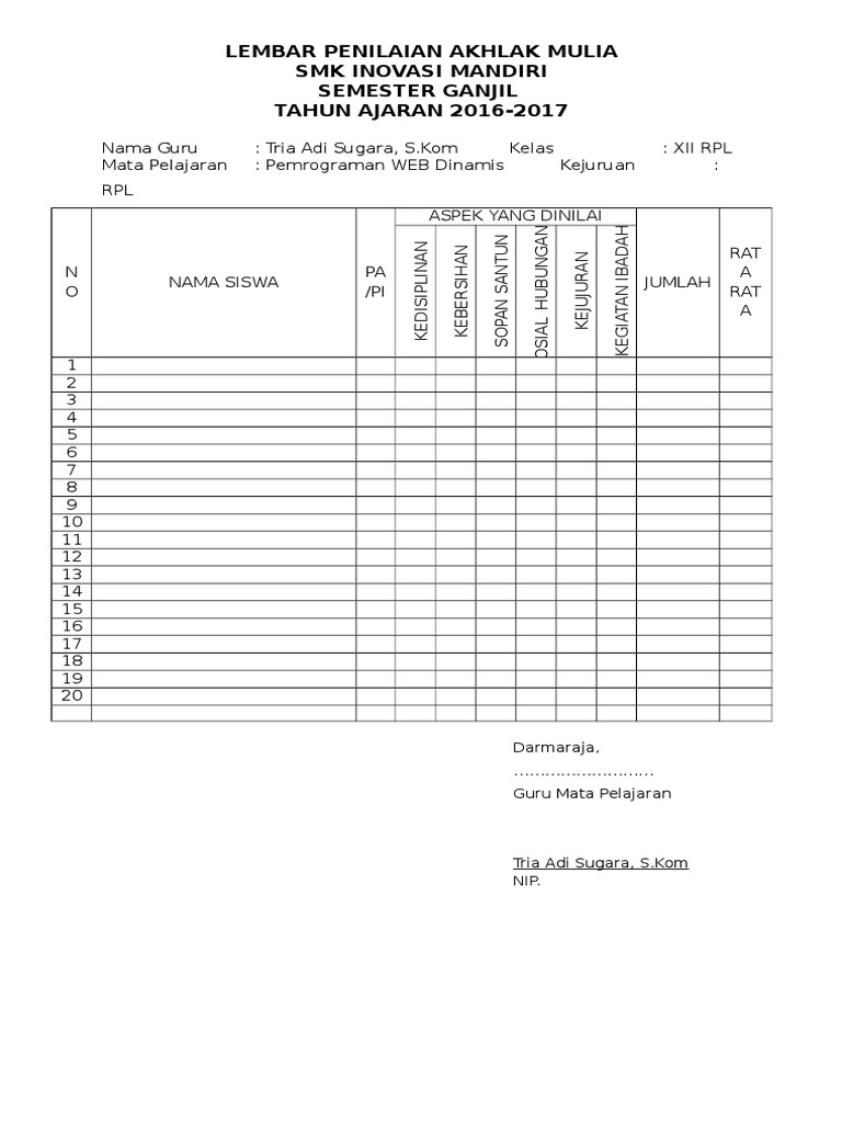 Format Penilaian Akhlak Mulia Dan Kepribadian Smk Vozeli Com