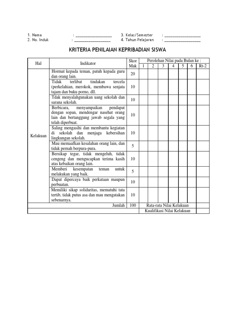 Banksoalujianmadrasah Contoh Format Penilaian Akhlak Dan Kepribadian Siswa Oleh Guru Bk