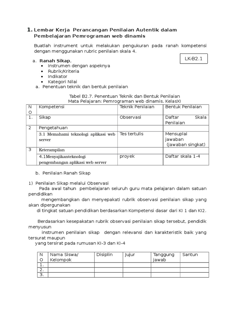 Contoh Format Penilaian Autentik Ma Sma Smk Kurikulum 2013