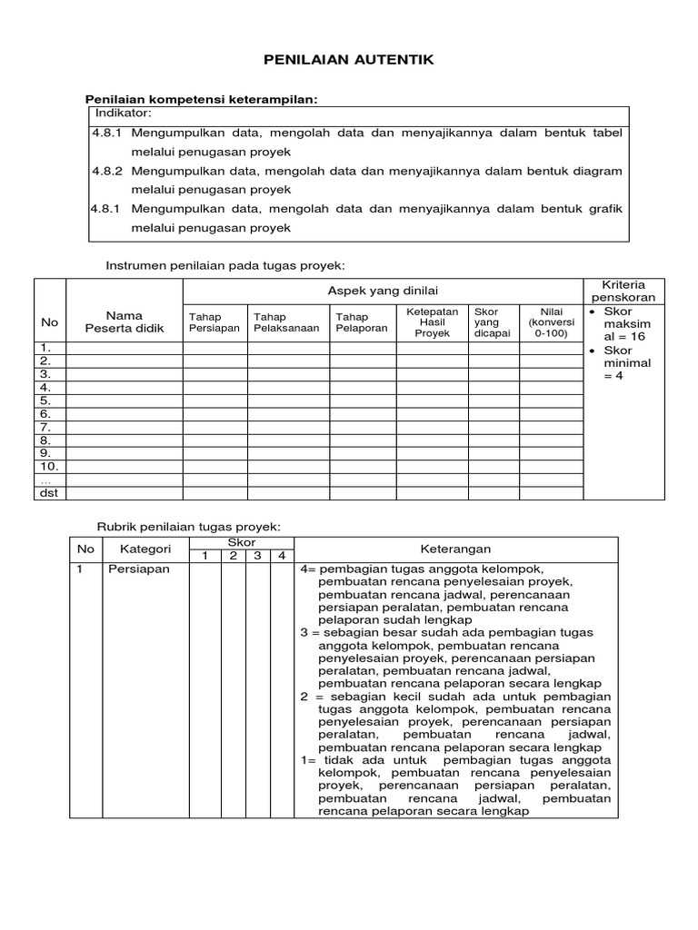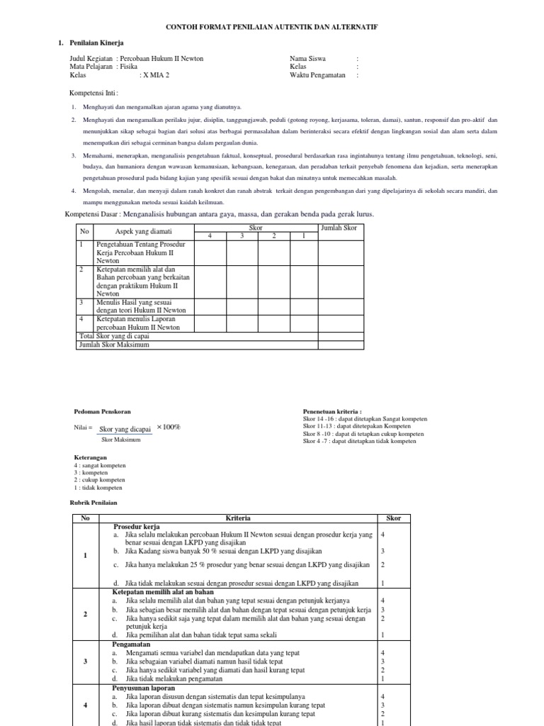 Contoh Format Penilaian Autentik Dan Alternatif