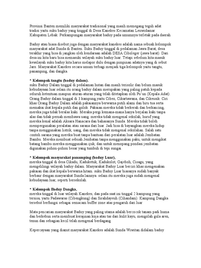 Layar Asdos Unsur Unsur Kebudayaan Suku Baduy