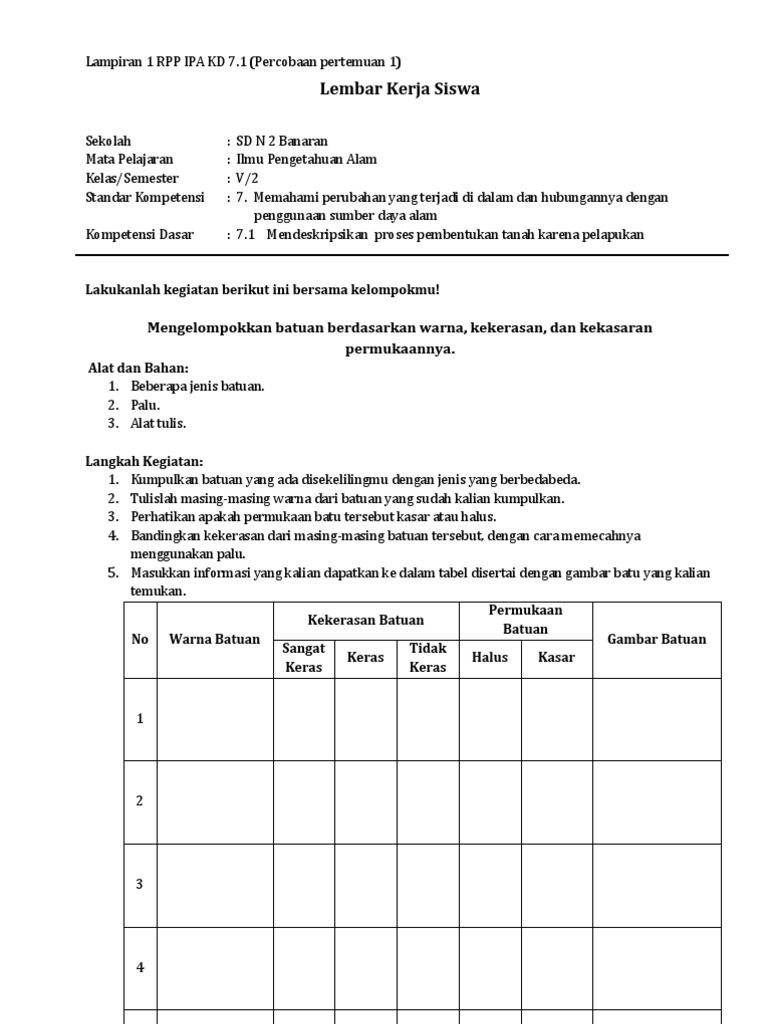 Rpp Ipa Kelas 5 Tentang Struktur Bumi