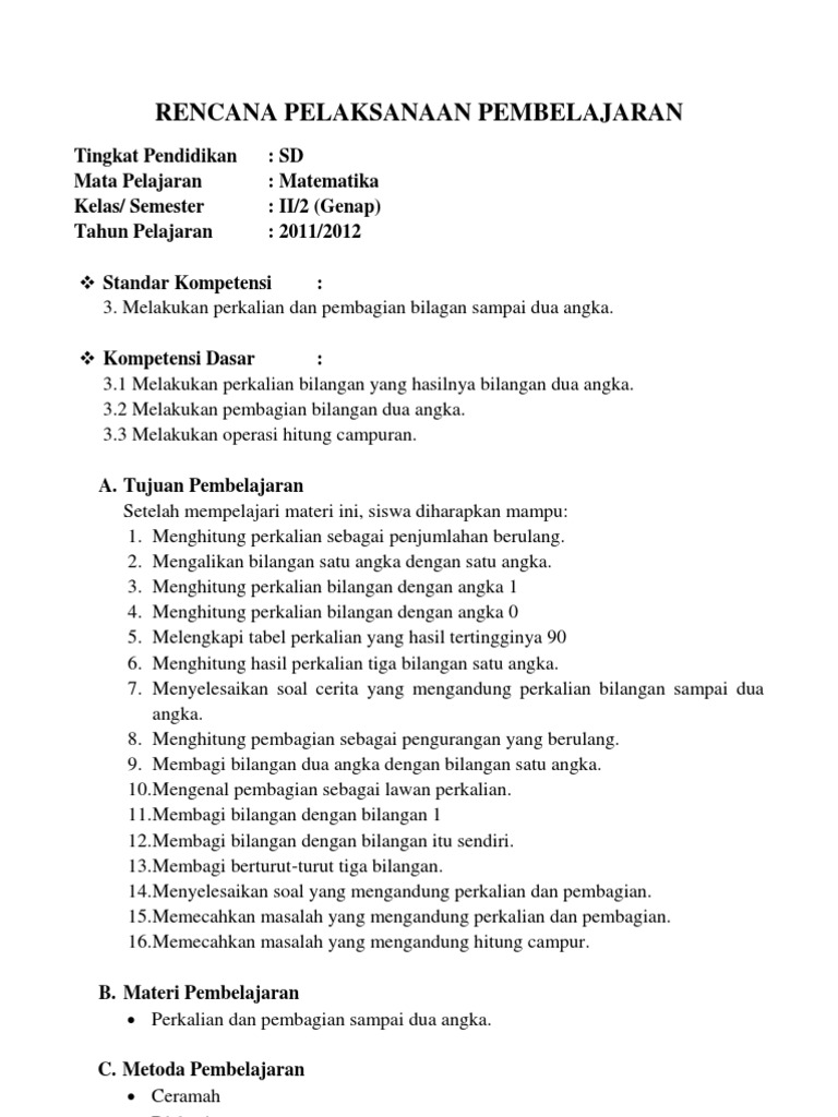 Download Rpp Ktsp Matematika Kelas 2 Semester 2 Perkalian Kanal Jabar