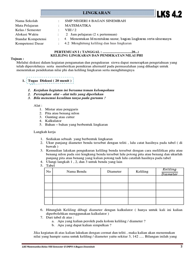 Rpp Matematika Tentang Keliling Dan Luas Lingkaran