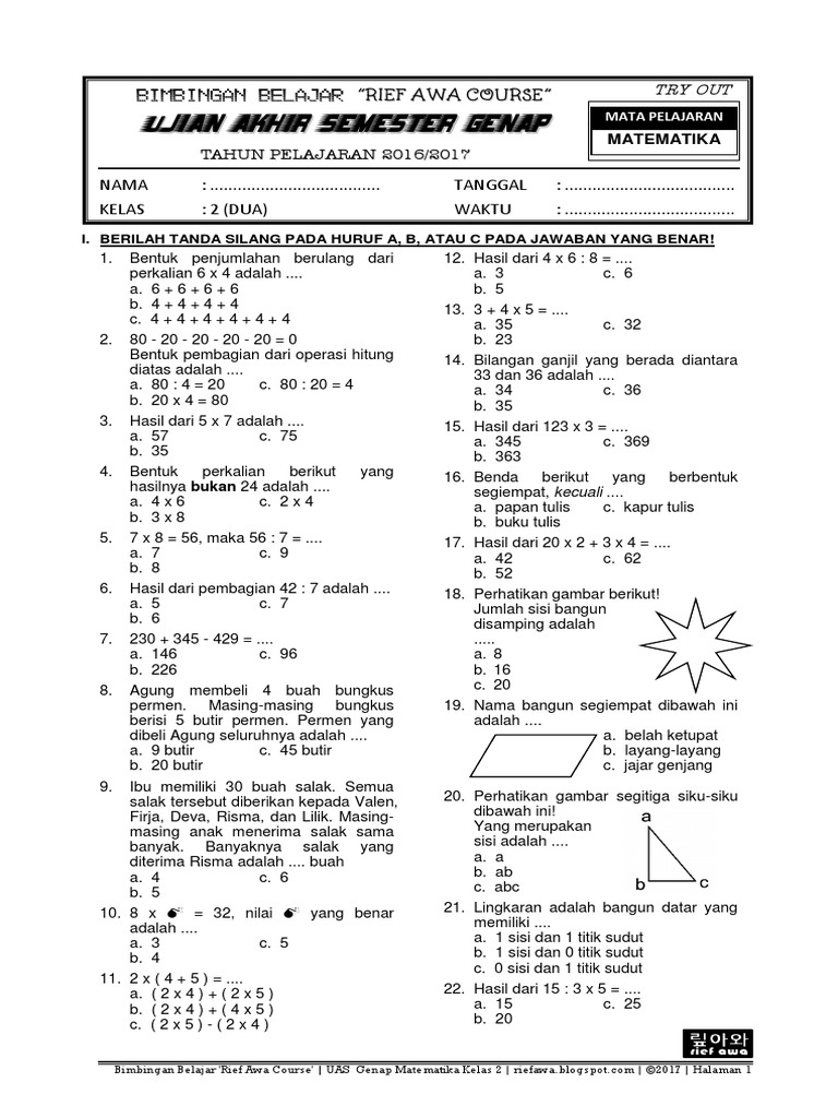 Pdf Soal Ukk Matematika Kelas 2 Vare Casanova Academia Edu