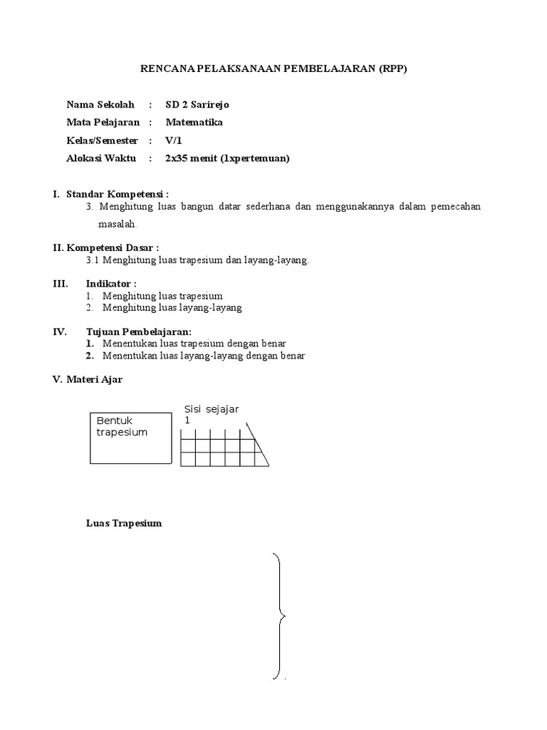 Rpp Satu Lembar Matematika Kelas 5 Kurikulum 2013 Semester 2 Revisi 2020 Info Pendidikan Terbaru