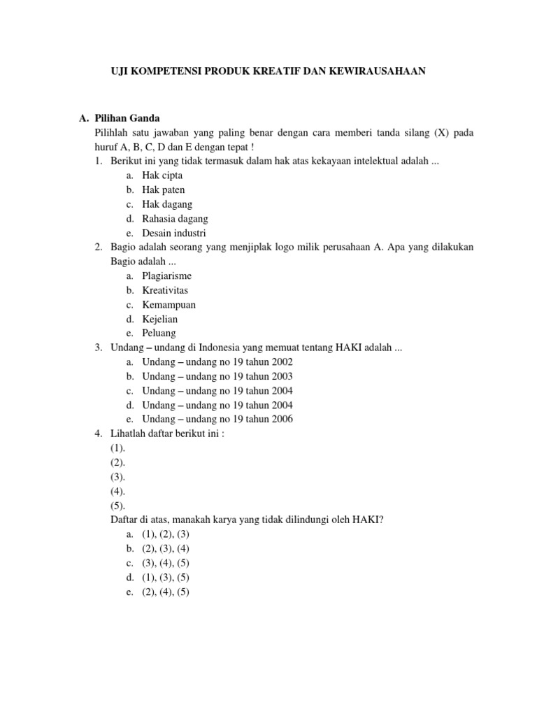 Kumpulan Soal Produk Kreatif Dan Kwu Kelas Xi Rpl