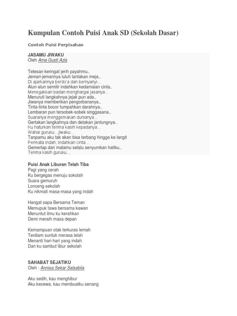 Kumpulan Puisi Anak Sd Indonesia Tentang Alam Keluarga Dan Pendidikan