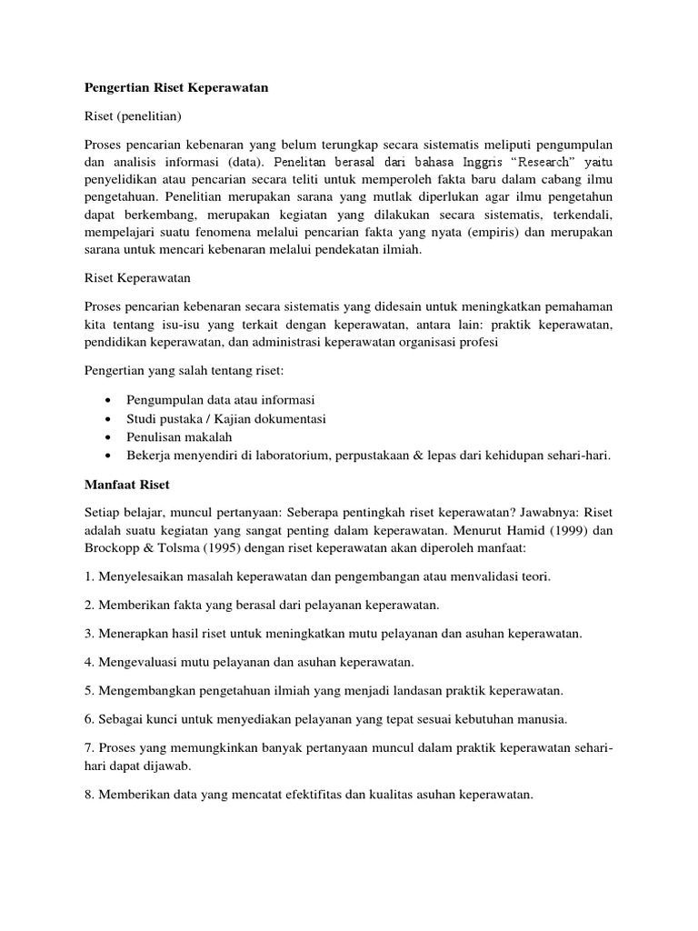 Doc Riset Dalam Keperawatan Kusnadi Jaya And Yuyun Safitri Academia Edu