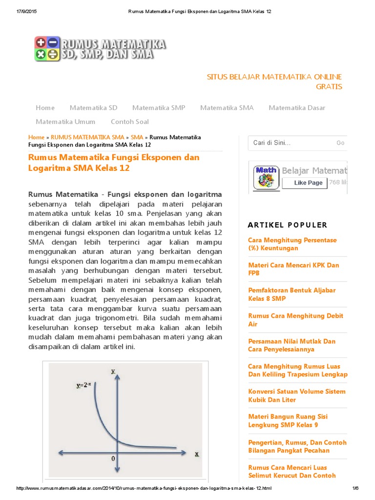 Rumus Matematika Fungsi Eksponen Dan Logaritma Sma Kelas 12 Pdf Document