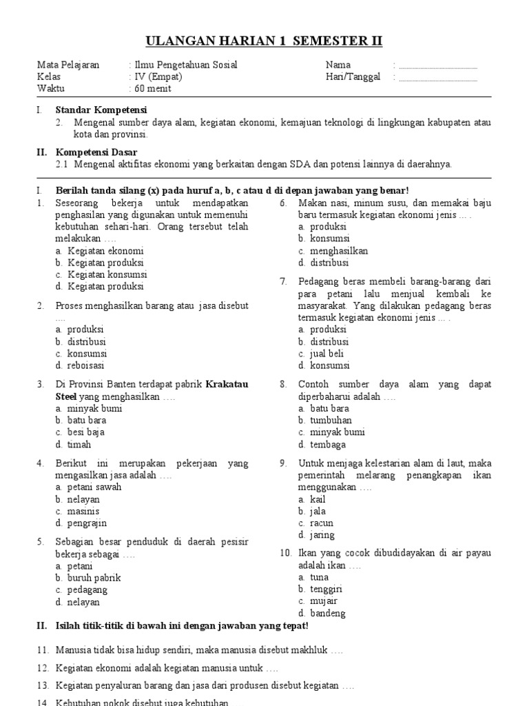 Soal Uts Mata Pelajaran Ips Kelas 4 Sd Semester 2 Idn Paperplane
