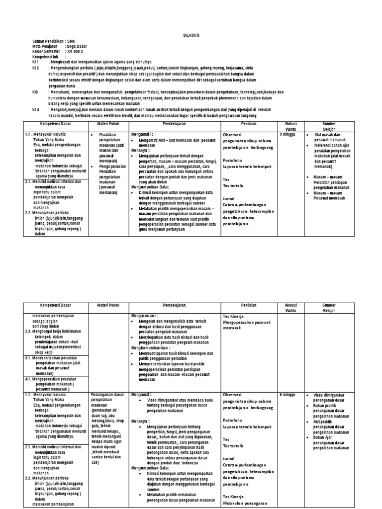 Uwire Rpp Dan Silabus Tingkat Smk Jurusan Tata Boga Showing 1 1 Of 1