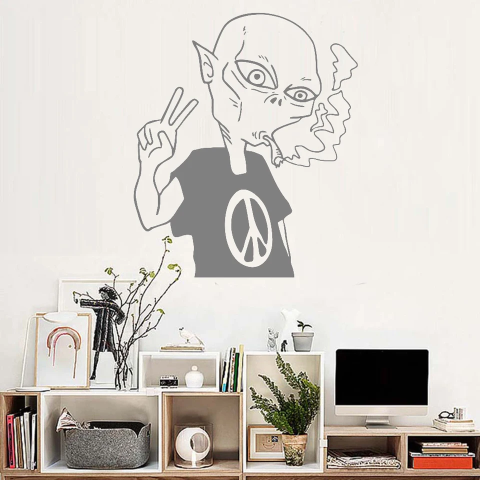Alien Peace Love Merokok Stiker Dinding Ufo E Co Ramah Wallpaper Vinyl Kualitas Tinggi Lukisan Dinding Stiker Seni Desain Poster Sa883 Poster Design Designer Wall Stickerswall Sticker Aliexpress
