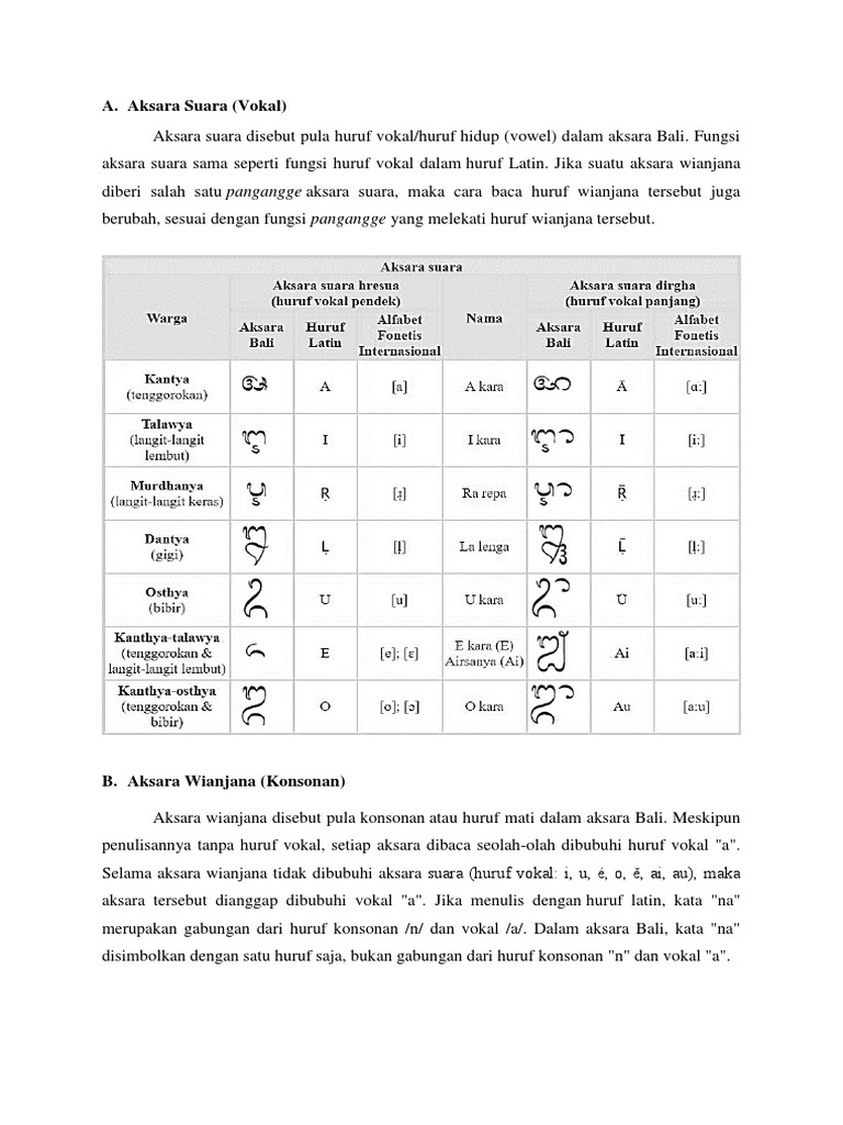 Berdasarkan keputusan pasamuan agung kecil 1963 semua kata dasar dan dua suku ditulis menggunakan pasang jajar. Wenten patpat aksara baline sane kabaos aksara ardasuara inggih punika. B aksara ardasuara aksara ardasuara mateges aksara setengah suara.