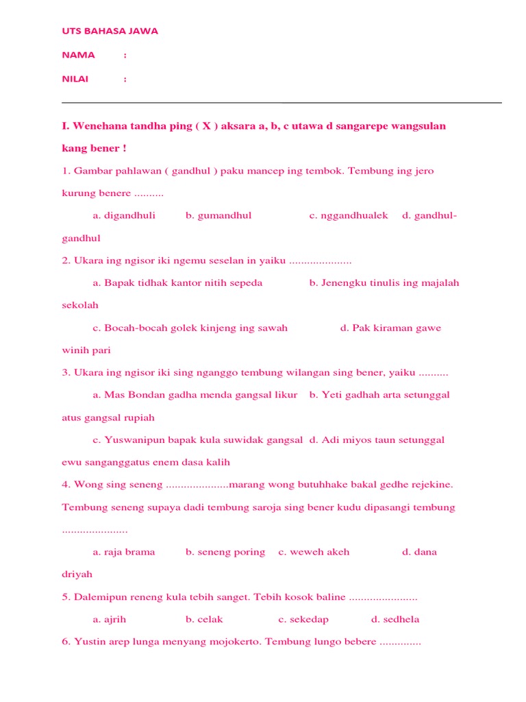 Soal Uts Bahasa Jawa Kelas Iii Semester 2 Kumpulan Soal Soal Uts Bahasa Jawa Kelas Iii Semester 2kumpulan Soal Pelajaran Dan Catatan Materisoal Uts Bahasa Jawa Kelas Iii Semester