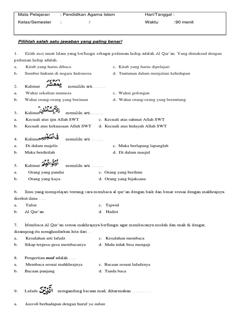 Soal Pai Kelas 7 Dan Bahasa Sunda Kelas 8