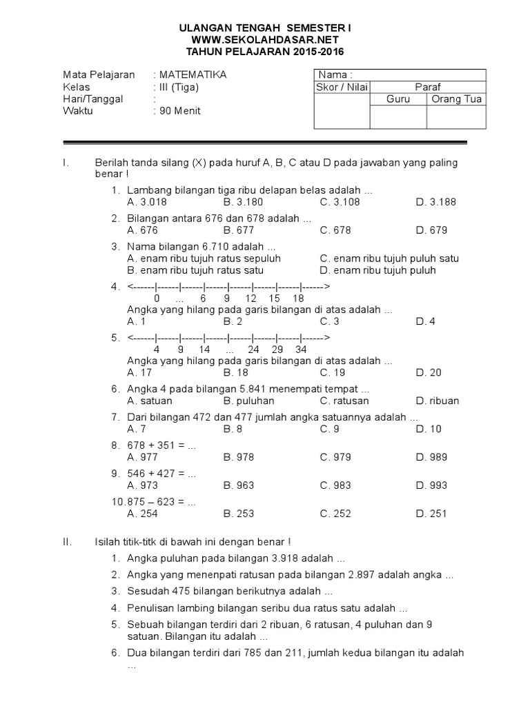 Soal Uts Terbaru Dan Terlengkap Tahun 2016 2017 Sd Mi Uts 1 Bsun Kelas 3