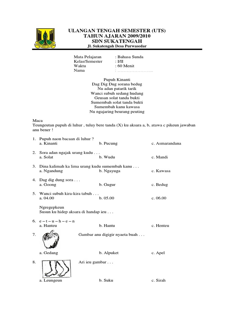 Soal Uts Bahasa Sunda Kelas 3 Semester 1