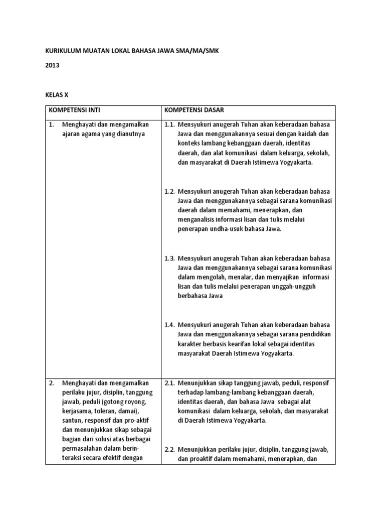 Ki Dan Kd Bahasa Daerah Jawa Sd Kurikulum 2013 Sekolahdasar Net