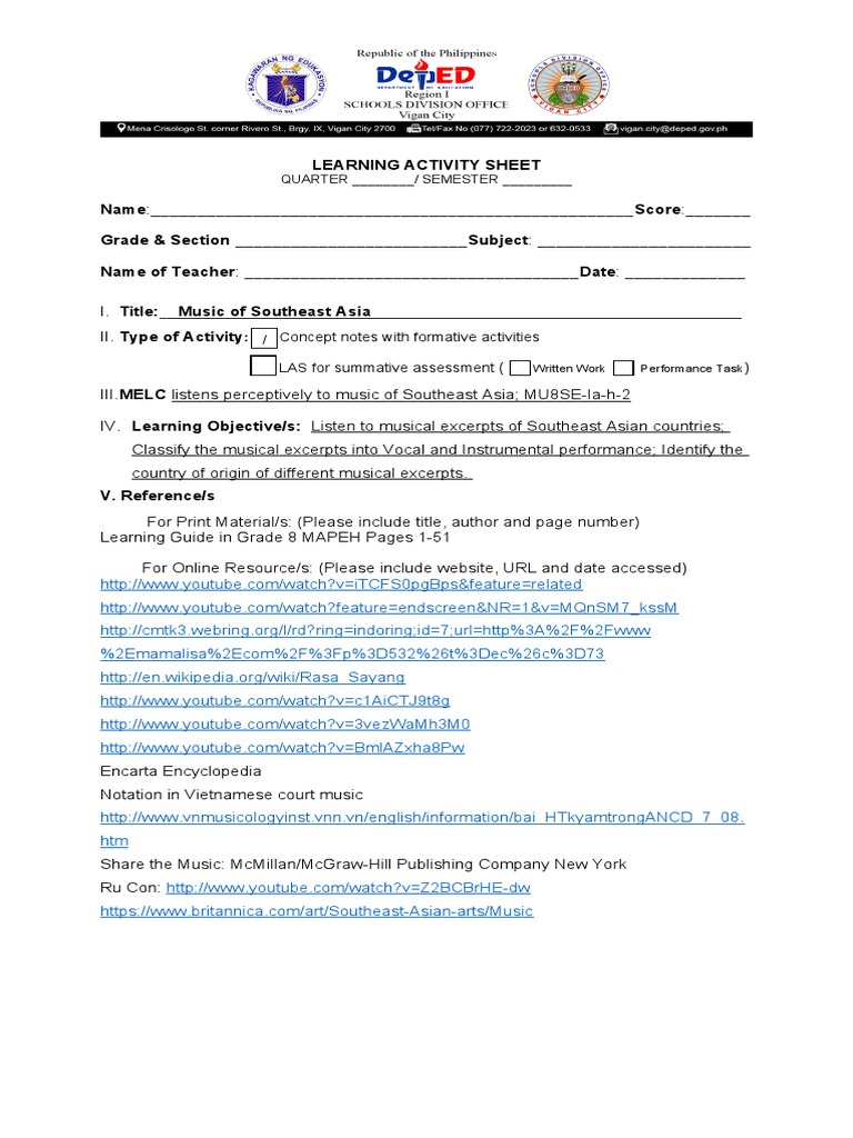 Music Gr8 Q1 Apes Ruthanthony Langbayan Melc1 Southeast Asia Performing Arts