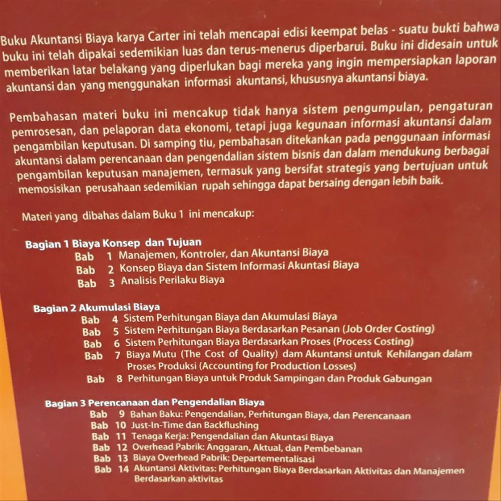 Buku Akuntansi Biaya William K Carter Edisi 14 Buku 1 Shopee Indonesia