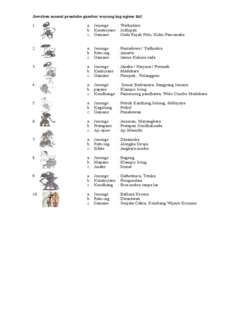 Gatekna Gambar Wayang Ngisor Iki Sapa Arane Ngendi Kasatriyane Sapa Wae Garwane Apa Wae Brainly Co Id