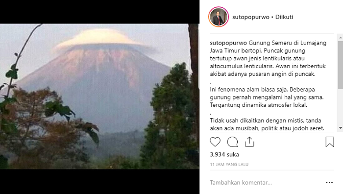 Heboh Gunung Semeru Bertopi Ini Penjelasannya