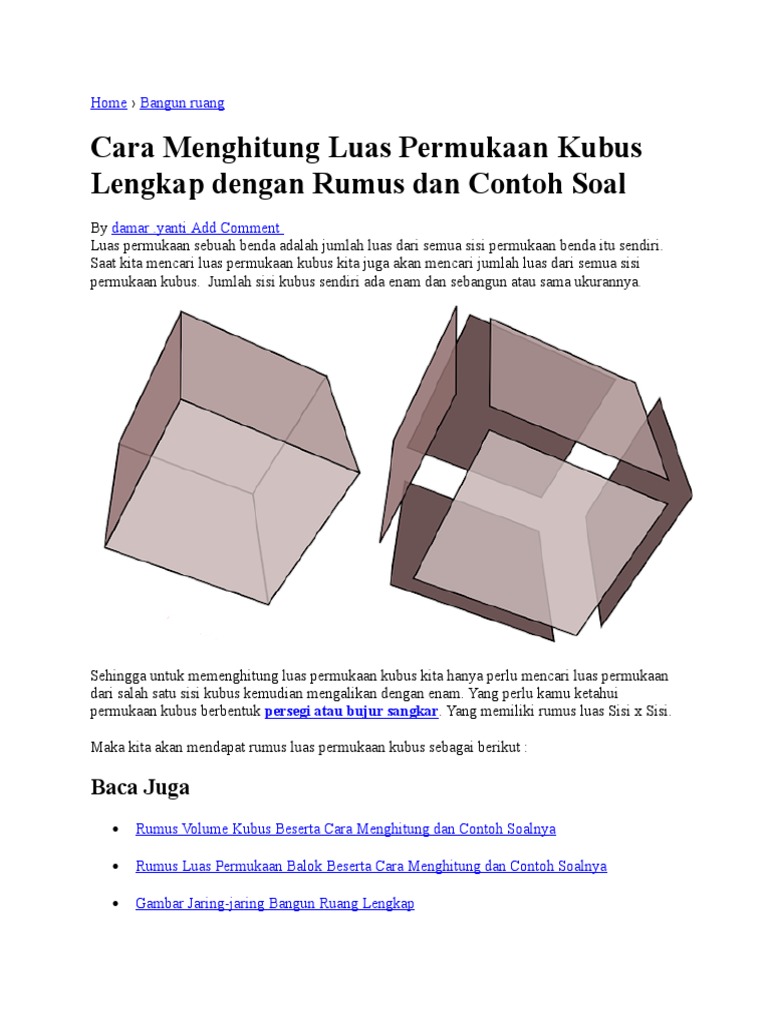 Contoh Soal Luas Permukaan Volume Kubus Dan Jawabannya Soalfismat Com