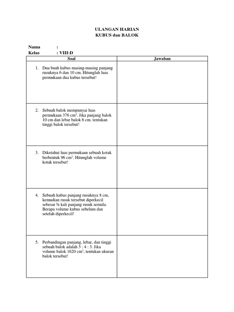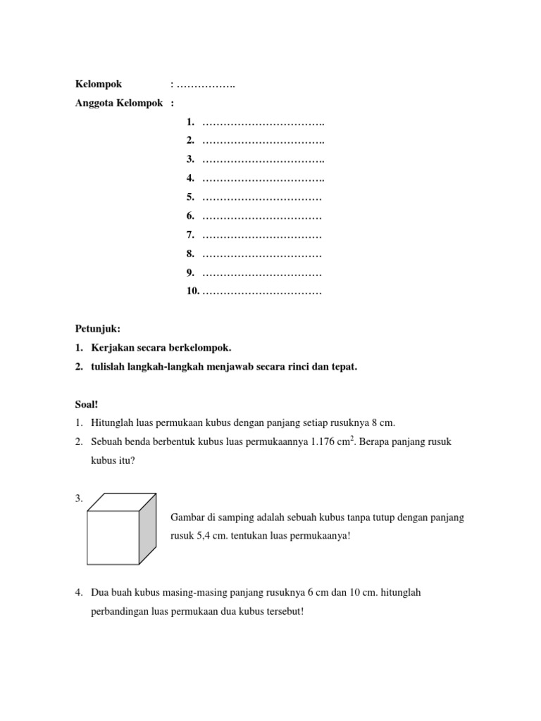 Contoh Soal Luas Permukaan Volume Kubus Dan Jawabannya Soalfismat Com