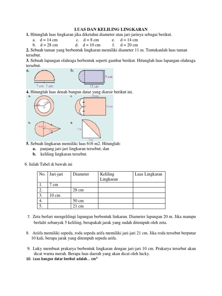 Soal Ulangan Matematika Kelas 6 Keliling Dan Luas Lingkaran Sekolahdasar Net