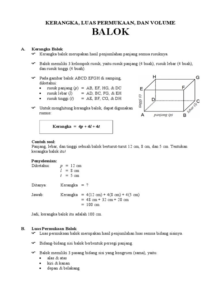 Rumus Volume Dan Luas Permukaan Balok Idschool