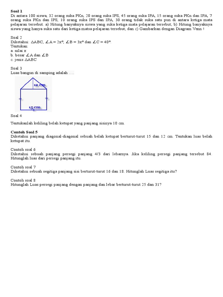 Contoh Soal Cerita Persegi Panjang Dan Jawabannya Ilmusosial Id