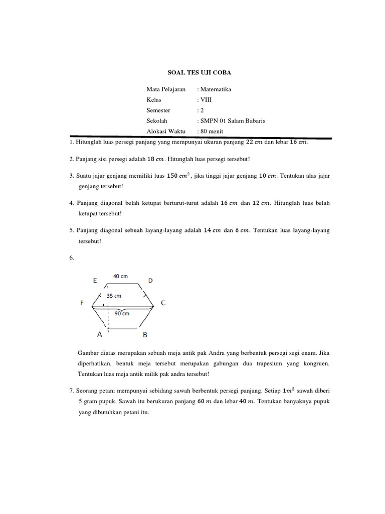 Doc Contoh Soal Dan Pembahasan Tentang Bangun Datar Segi Empat Berupa Persegi Dan Persegipanjang Muhamad Irawan Academia Edu