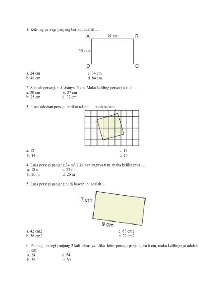 Pdf Soal Luas Dan Keliling Kelas 3 Sd Sienny Wu Academia Edu