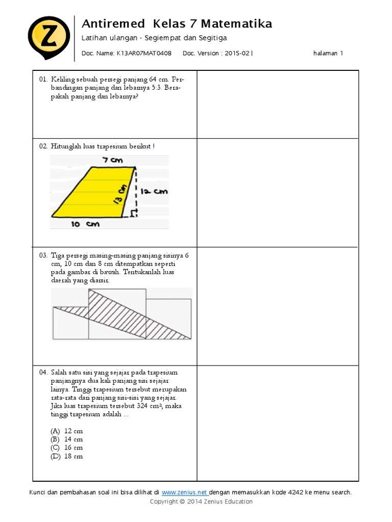 Soal Bangun Datar Trapesium Plus Kunci Jawaban Juragan Les