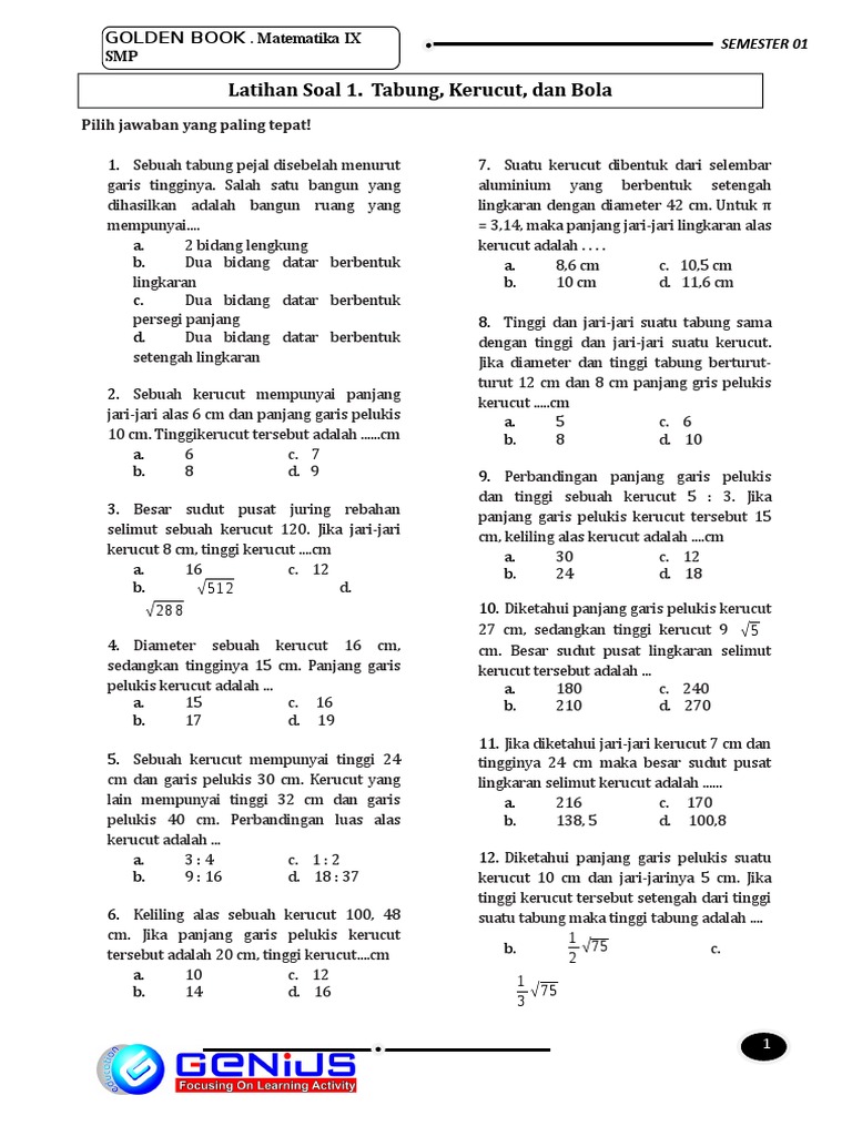 Latihan Soal Matematika Smp Kelas 8 Semester Genap