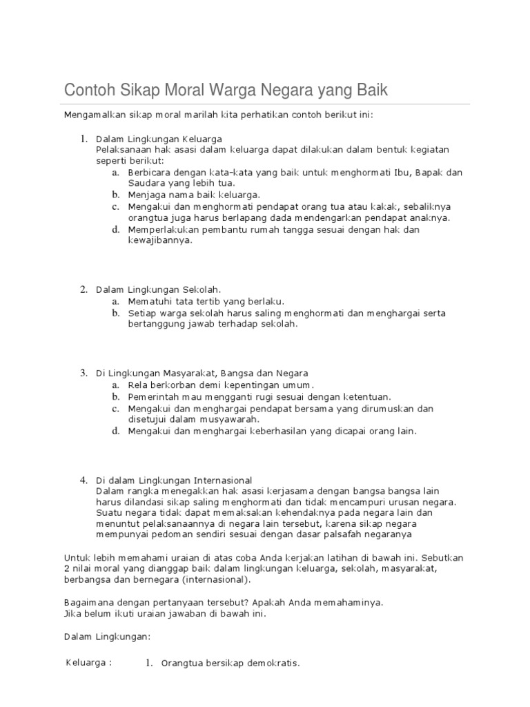 Contoh Sikap Moral Warga Negara Yang Baik