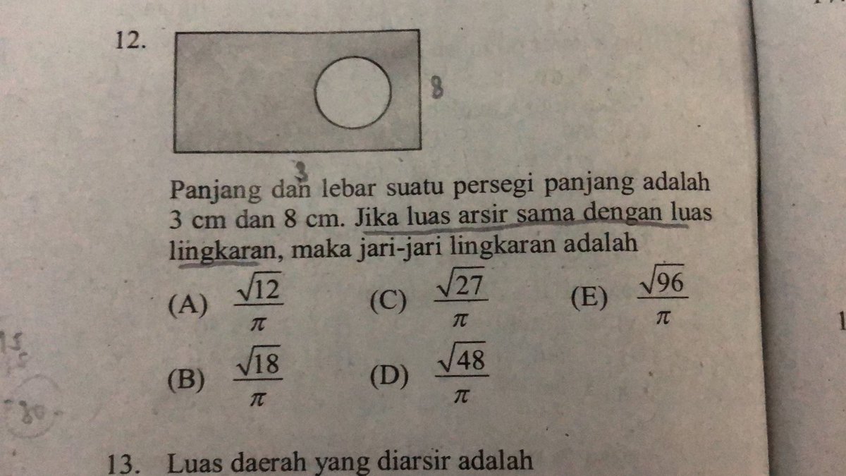 On Sbmptnfess On Twitter Tanyatpskuantitatif Panjang Dan Lebar Suatu Persegi Panjang Adalah 3 Cm Dan 8 Cm Jika Luas Arsir Sama Dengan Luas Lingkaran Maka Jari Jari Lingkaran Adalah Maaf Ga Nulis