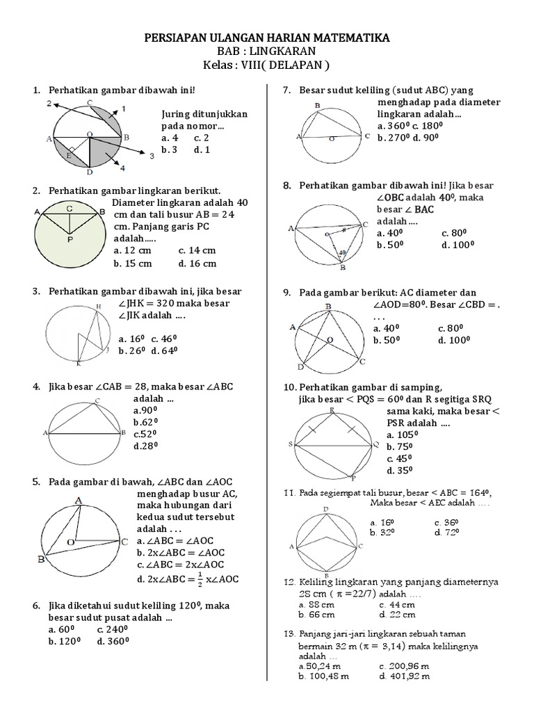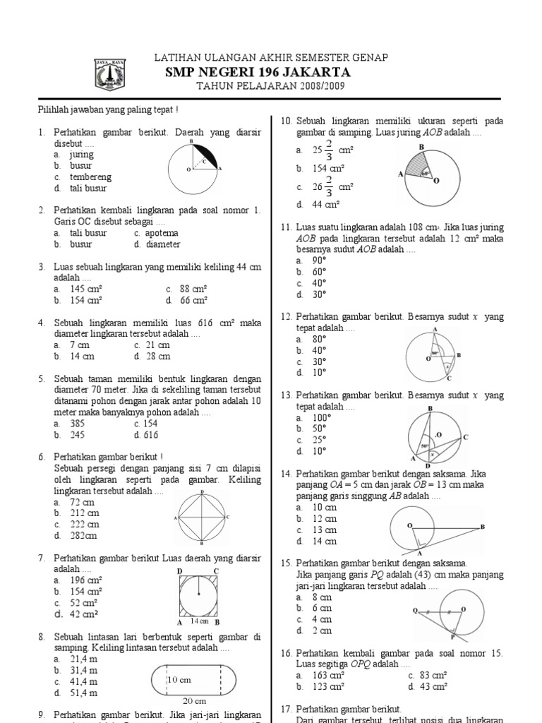 Contoh Soal Ulangan Keliling Dan Luas Lingkaran Rejang Bengkulu