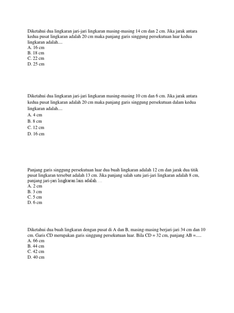 Panjang Jari Kecil 2cm Panjang Garis Singgung Persekutuan Luar Lingkaran 40cm Dan Jarak Pusat Brainly Co Id