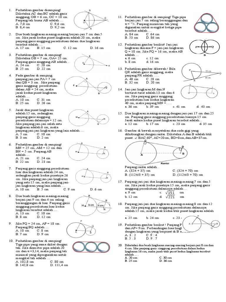 Panjang Jari Jari Lingkaran A Dan B Masing Masing Adalah 50 Cm Dan 20 M Jija Panjang Garis Singgung Brainly Co Id