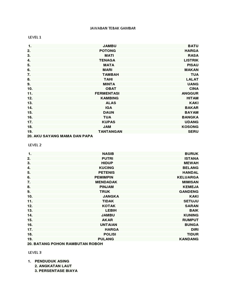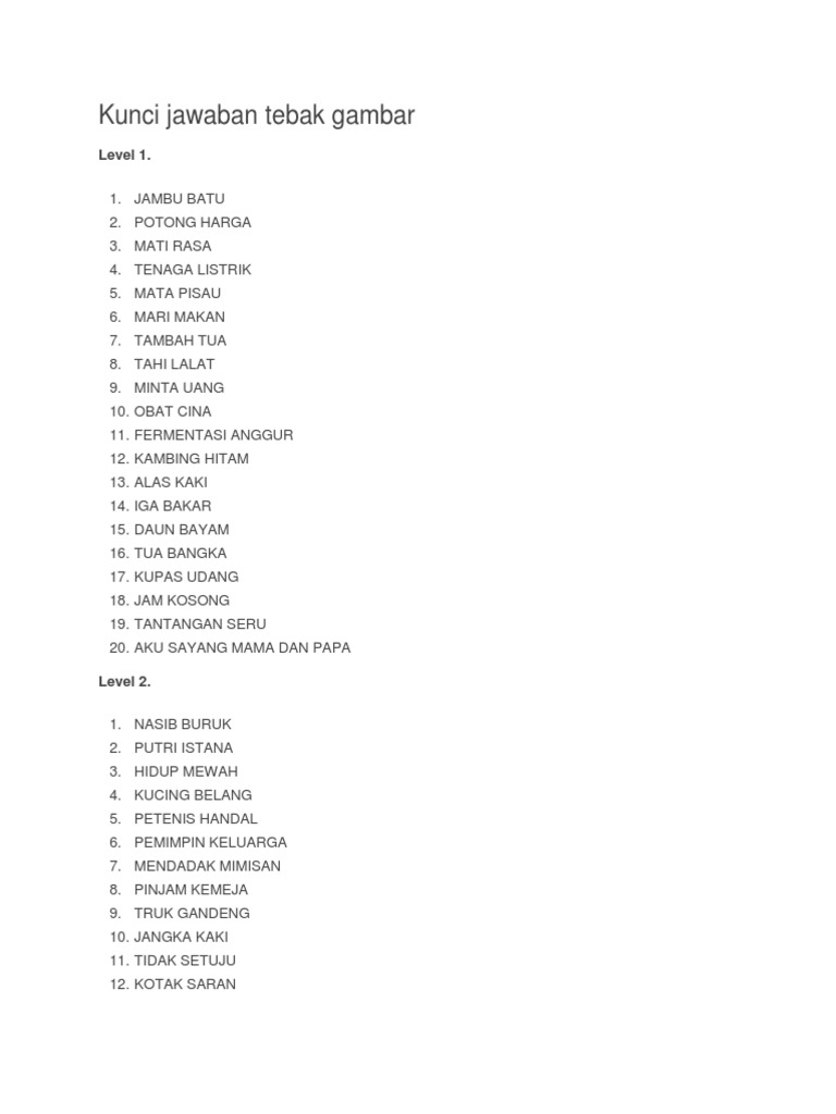 Kunci Jawaban Tebak Gambar Level 1 43 Lengkap 2017 Pdf