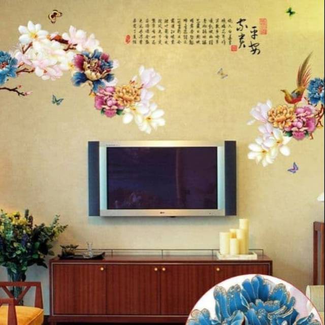Stiker Dinding Wallpaper 60x90cm Motif Karakter Rangkaian Bunga Aksara Huruf Cina Dekorasi Rumah Shopee Indonesia