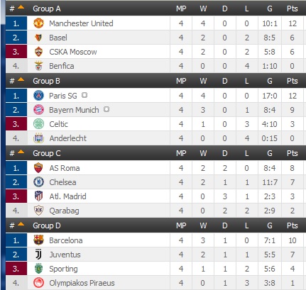 Tabel Klasemen Liga Champions Goal Com